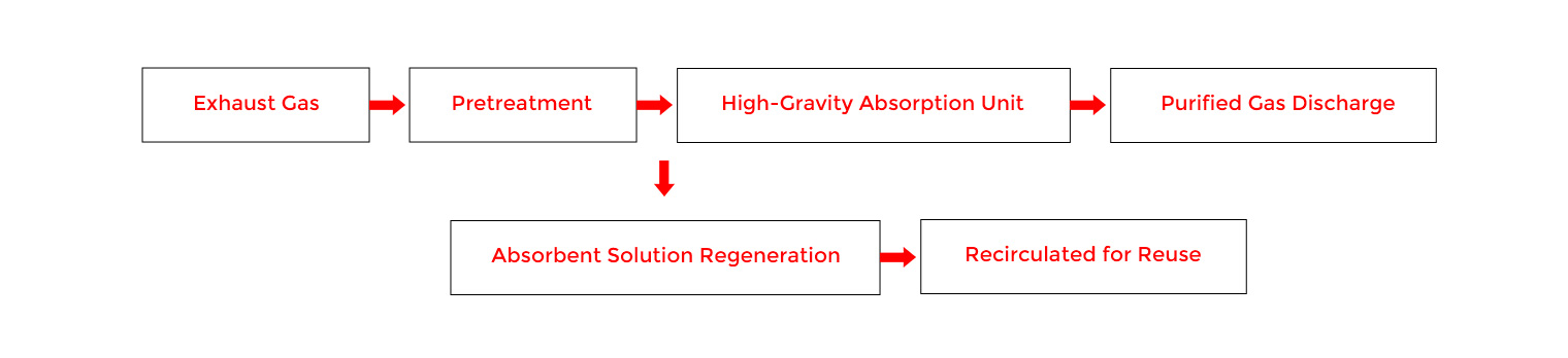 Технология очистки газа, использующая поле высокой гравитации для интенсификации массопереноса газа-жидкости, в первую очередь предназначена для очистки органических загрязняющих веществ в промышленных выхлопных газах.